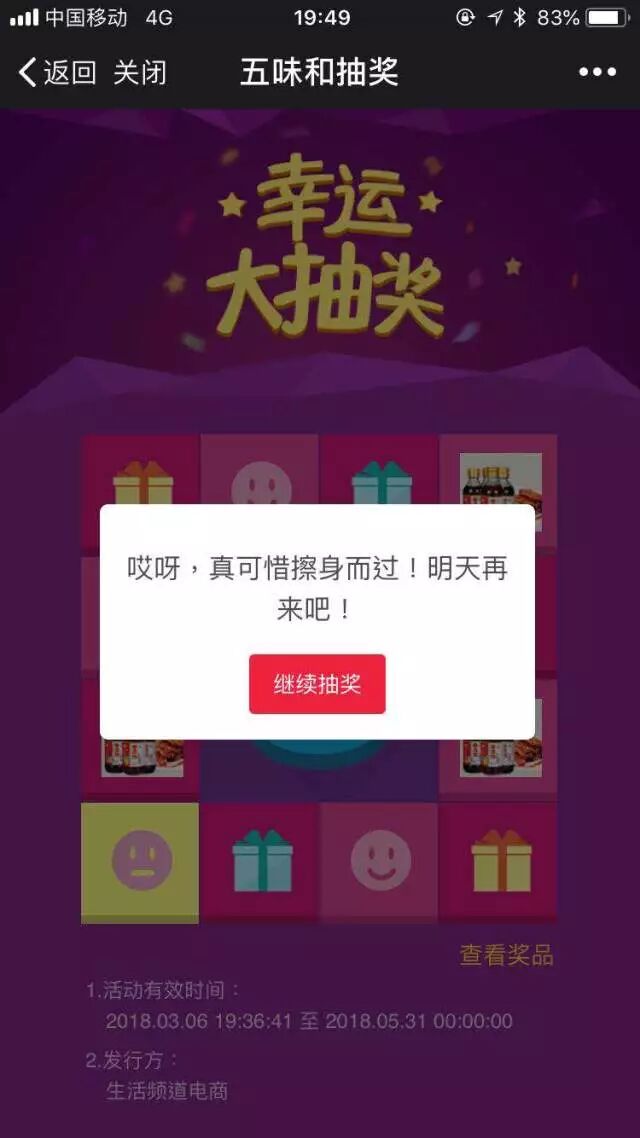 點擊“我要抽大獎”,每天有兩次抽獎機會,在活動結束前可天天抽獎哦!